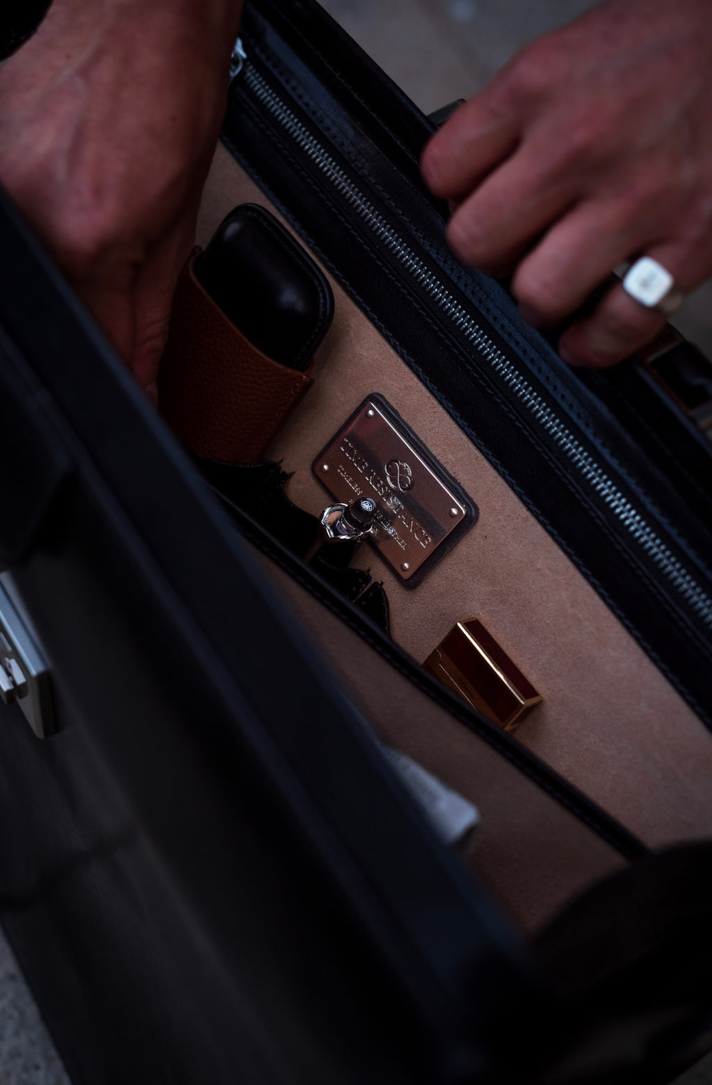 The embodiment of stature. The Firm conveys prominence, value and prestige. The person holding this full-grain leather briefcase will always be beyond reproach. For those who are expected to look intimidating, expensive and dashing, all at the same time. Strictly business.