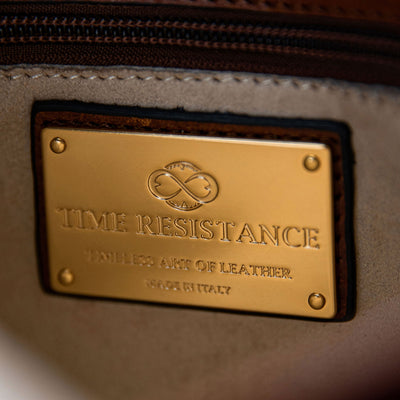 Time Resistance bags are crafted from premium full-grain, hand-dyed, vegetable-tanned Italian cowhide, known as Vachetta leather, which develops a beautiful patina.