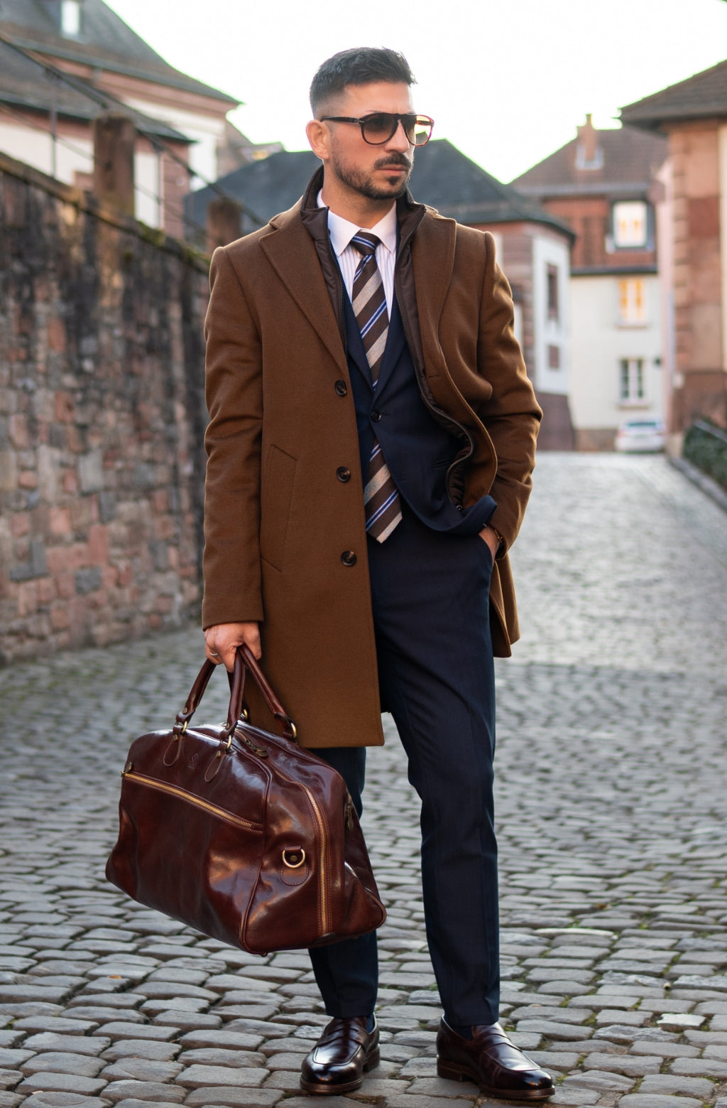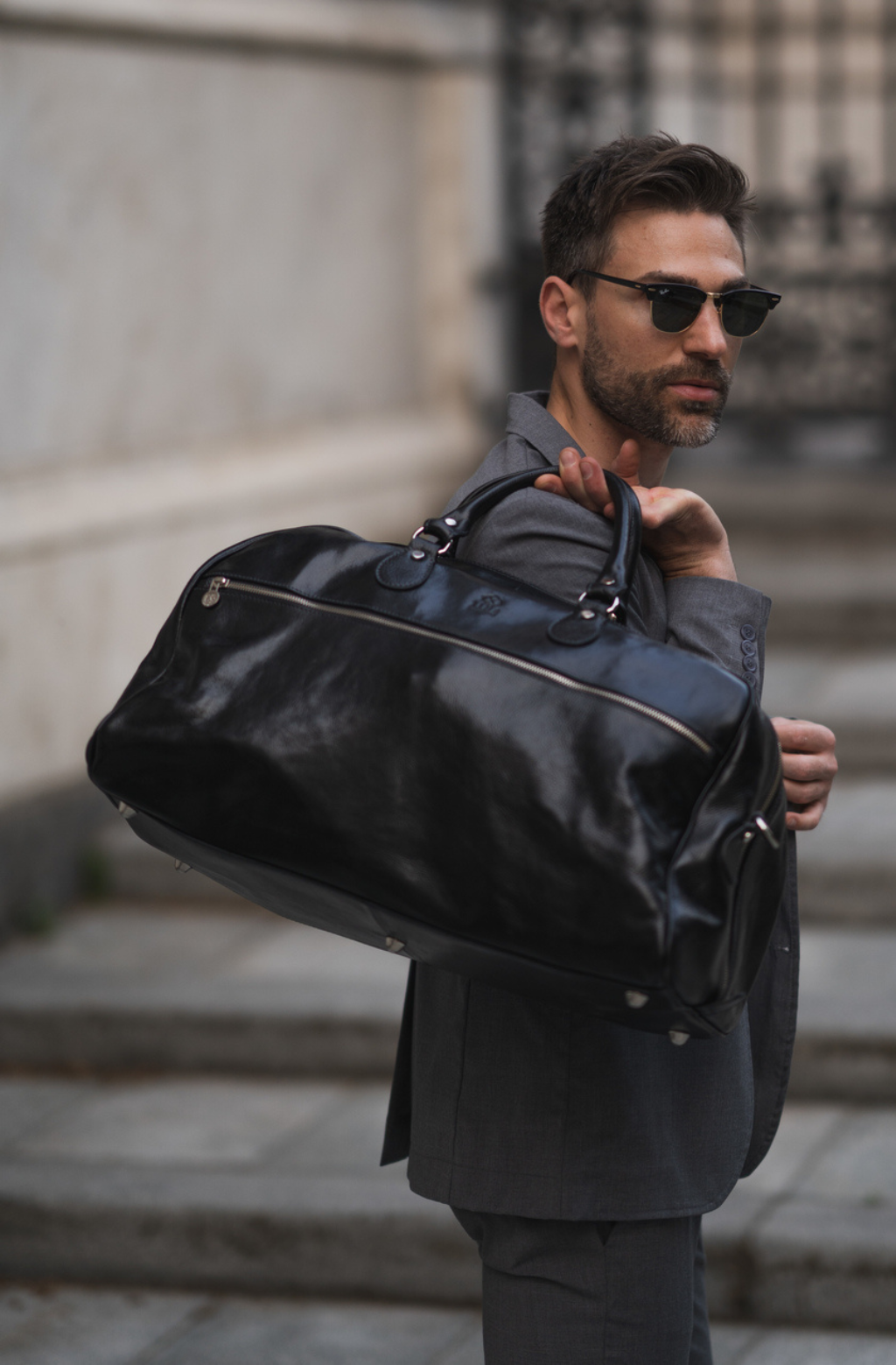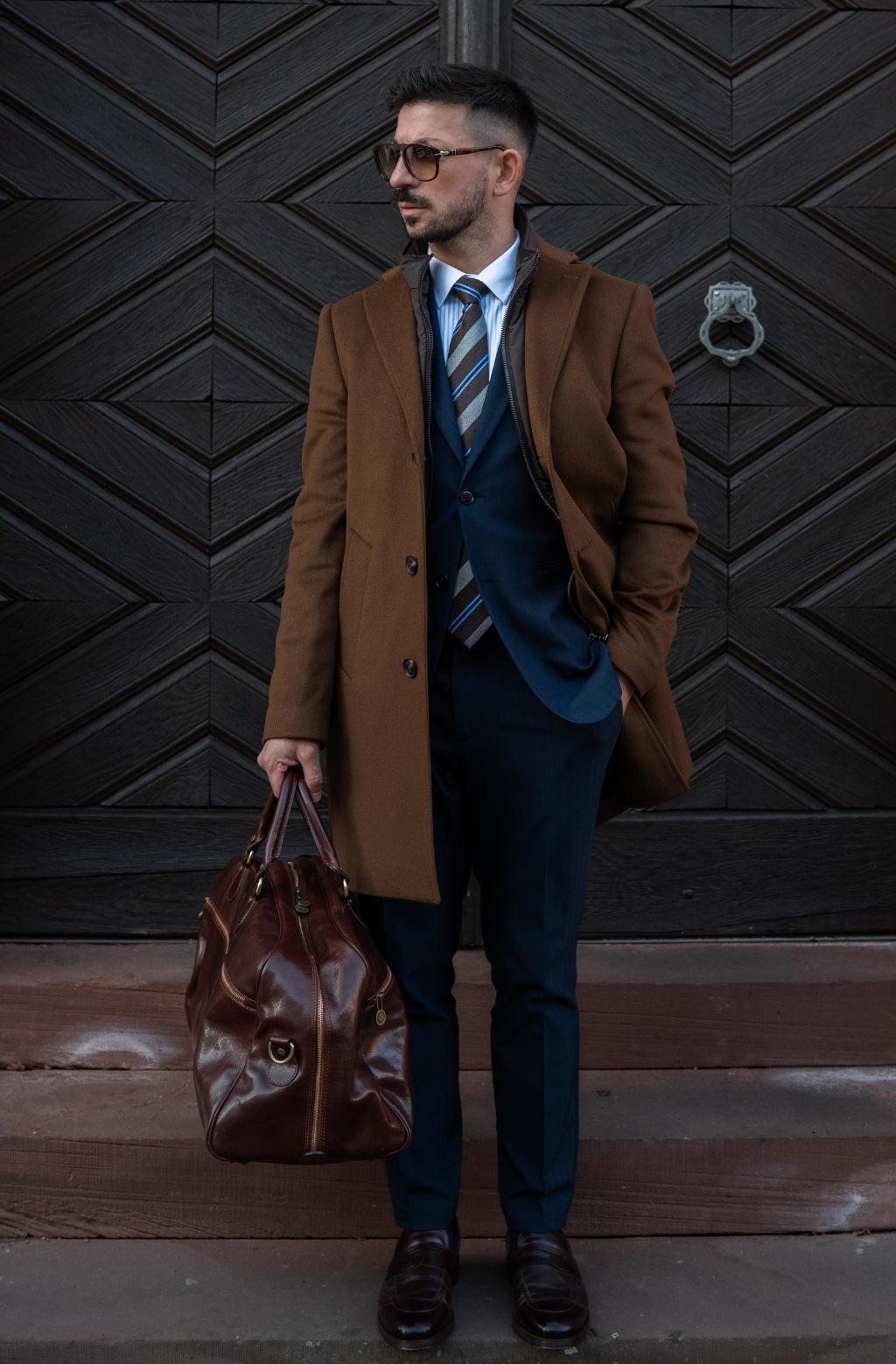 A leather duffel that combines time-tested design and modern life needs. Roomy enough to accompany you on a weekend getaway, short business trip, or to serve as an overnight bag when you’re not sure what the evening will bring.