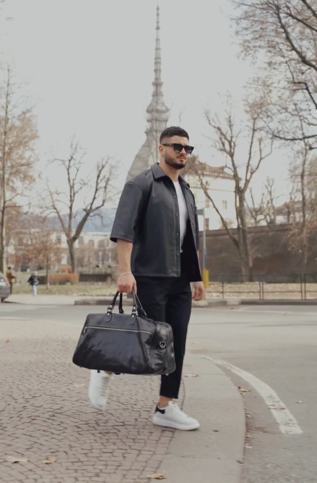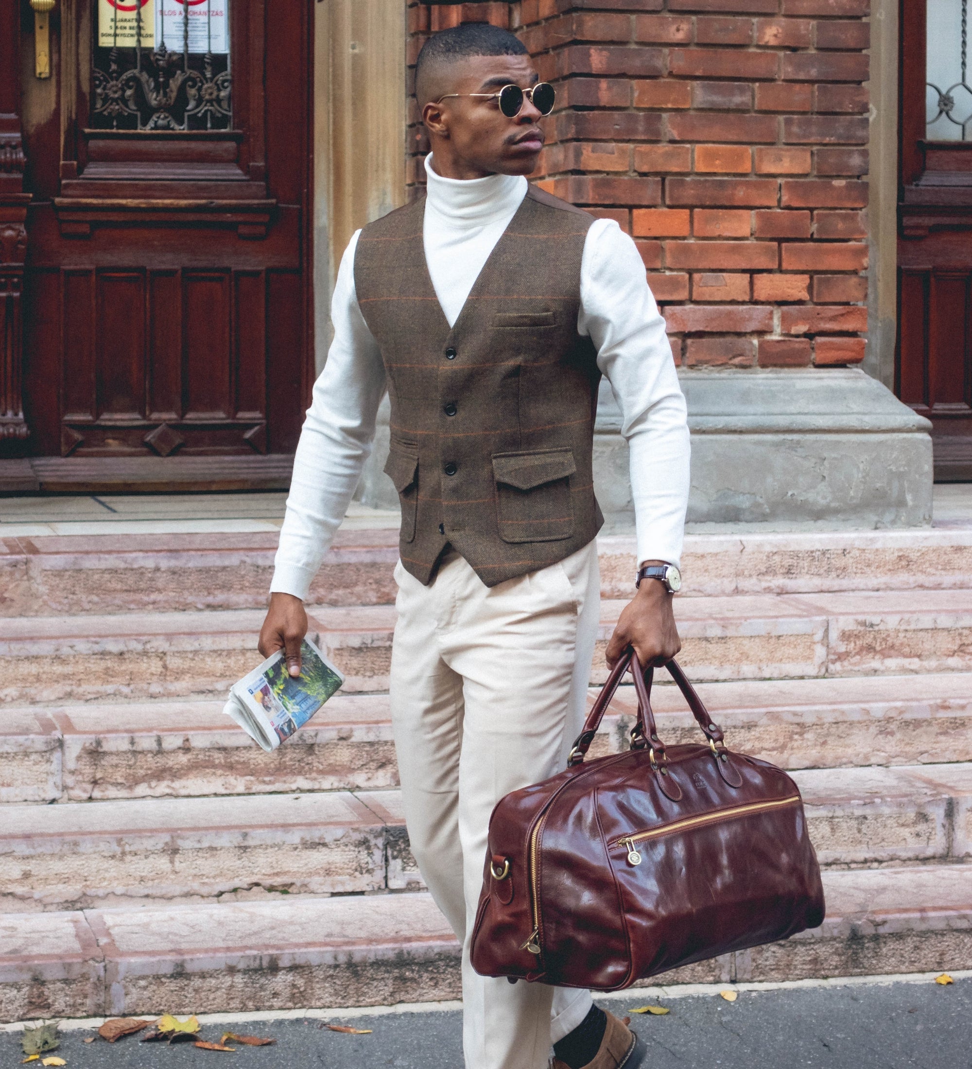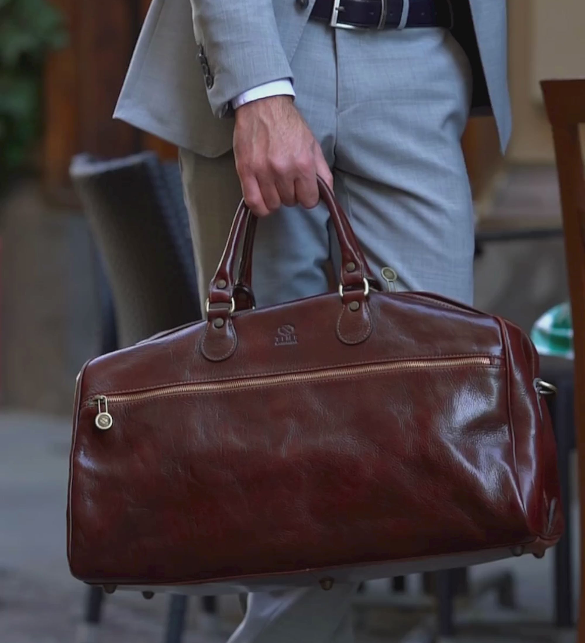 A leather duffel that combines time-tested design and modern life needs. Roomy enough to accompany you on a weekend getaway, short business trip, or to serve as an overnight bag when you’re not sure what the evening will bring.