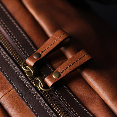 Time Resistance bags are crafted from premium full-grain, hand-dyed, vegetable-tanned Italian cowhide, known as Vachetta leather, which develops a beautiful patina.