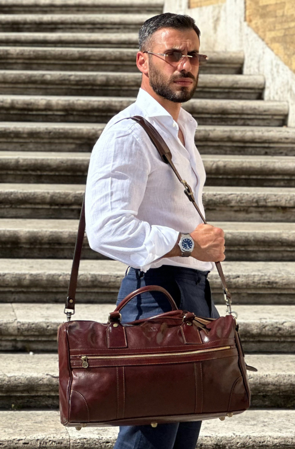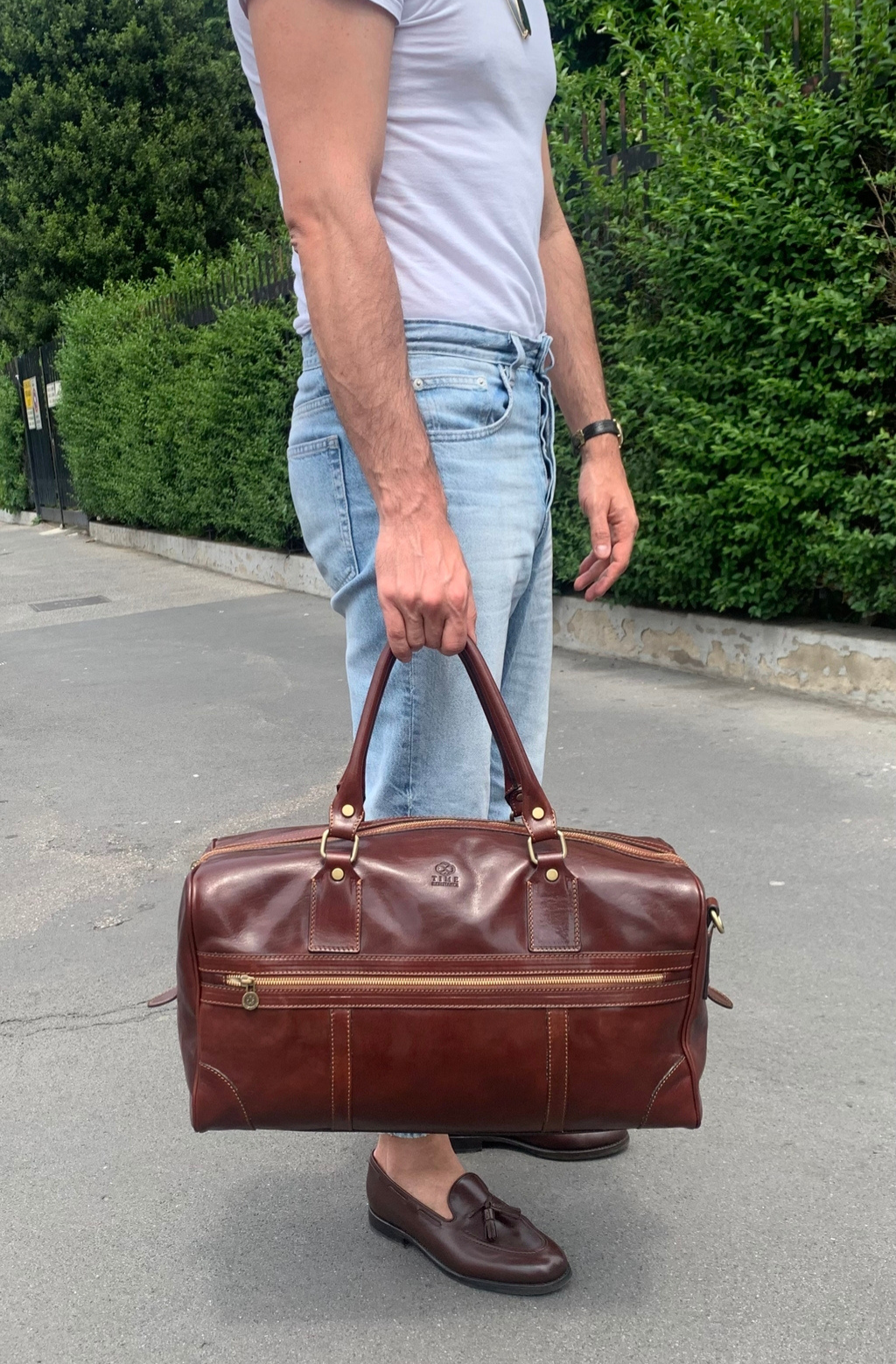 Time Resistance bags are crafted from premium full-grain, hand-dyed, vegetable-tanned Italian cowhide, known as Vachetta leather, which develops a beautiful patina.