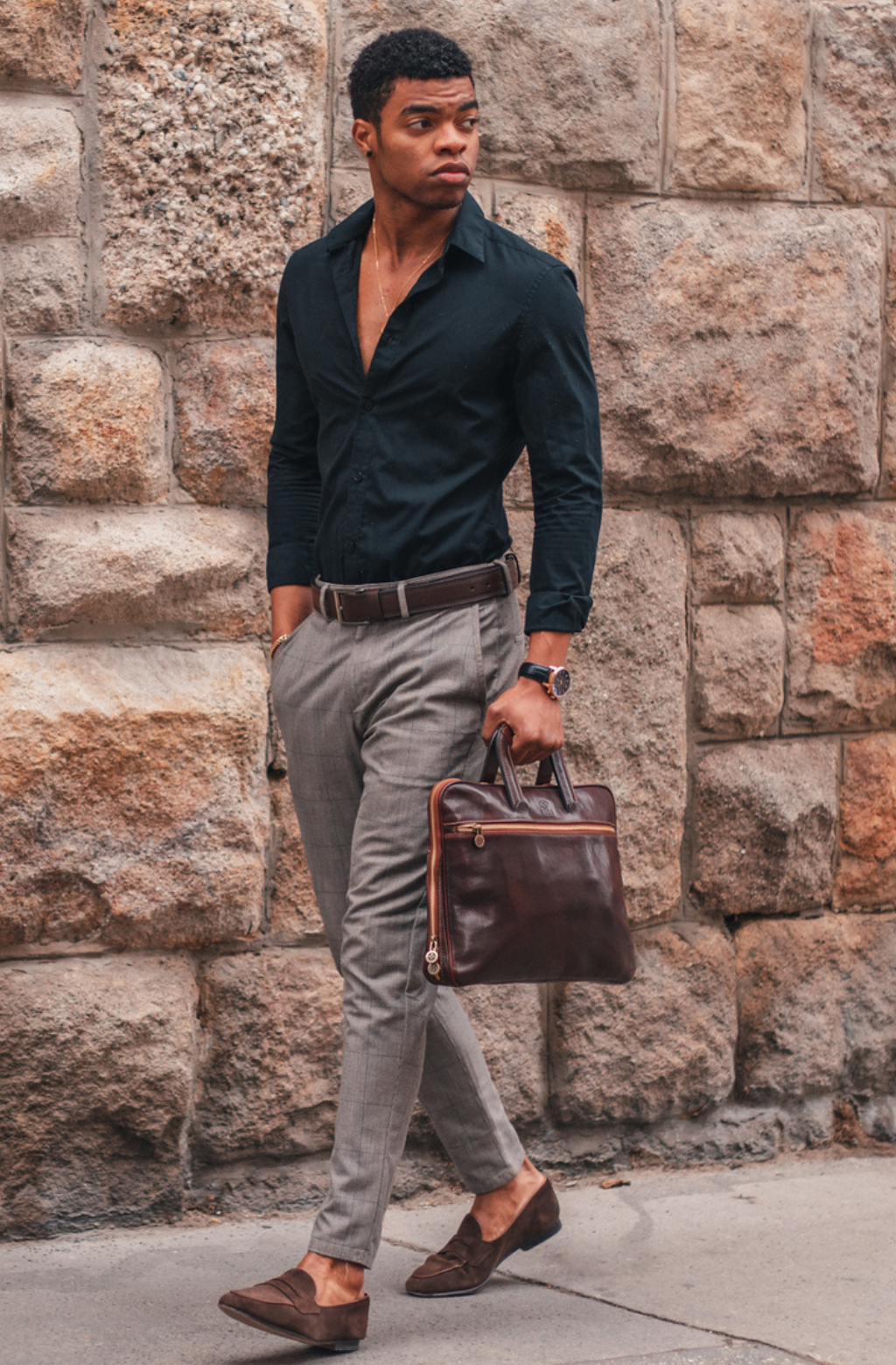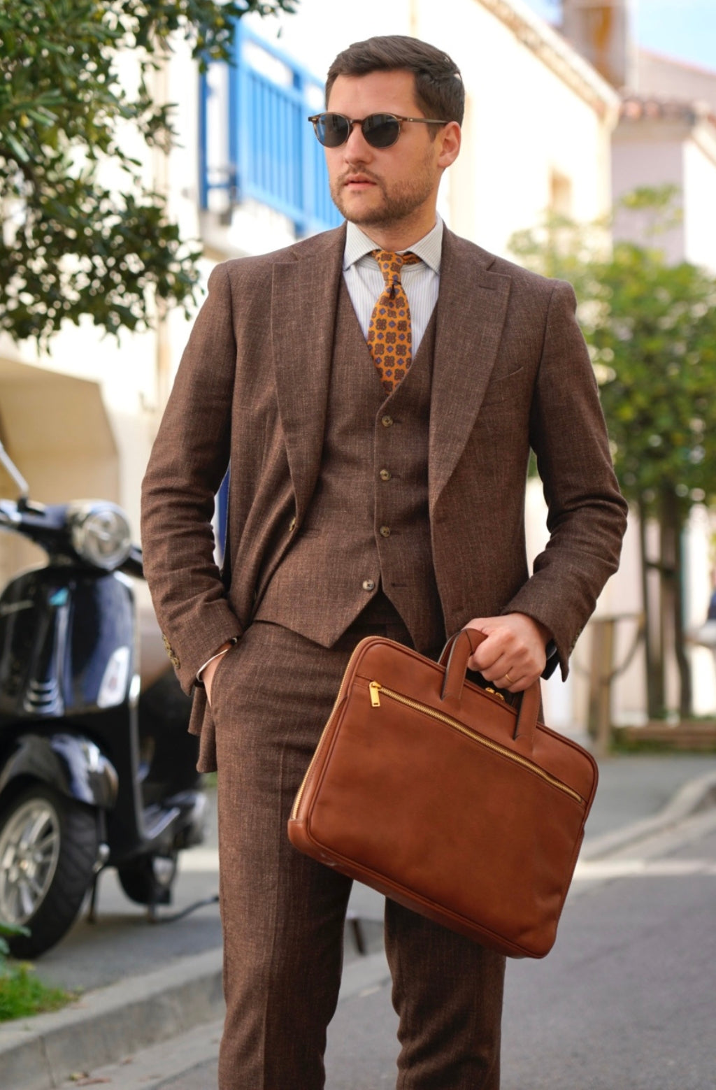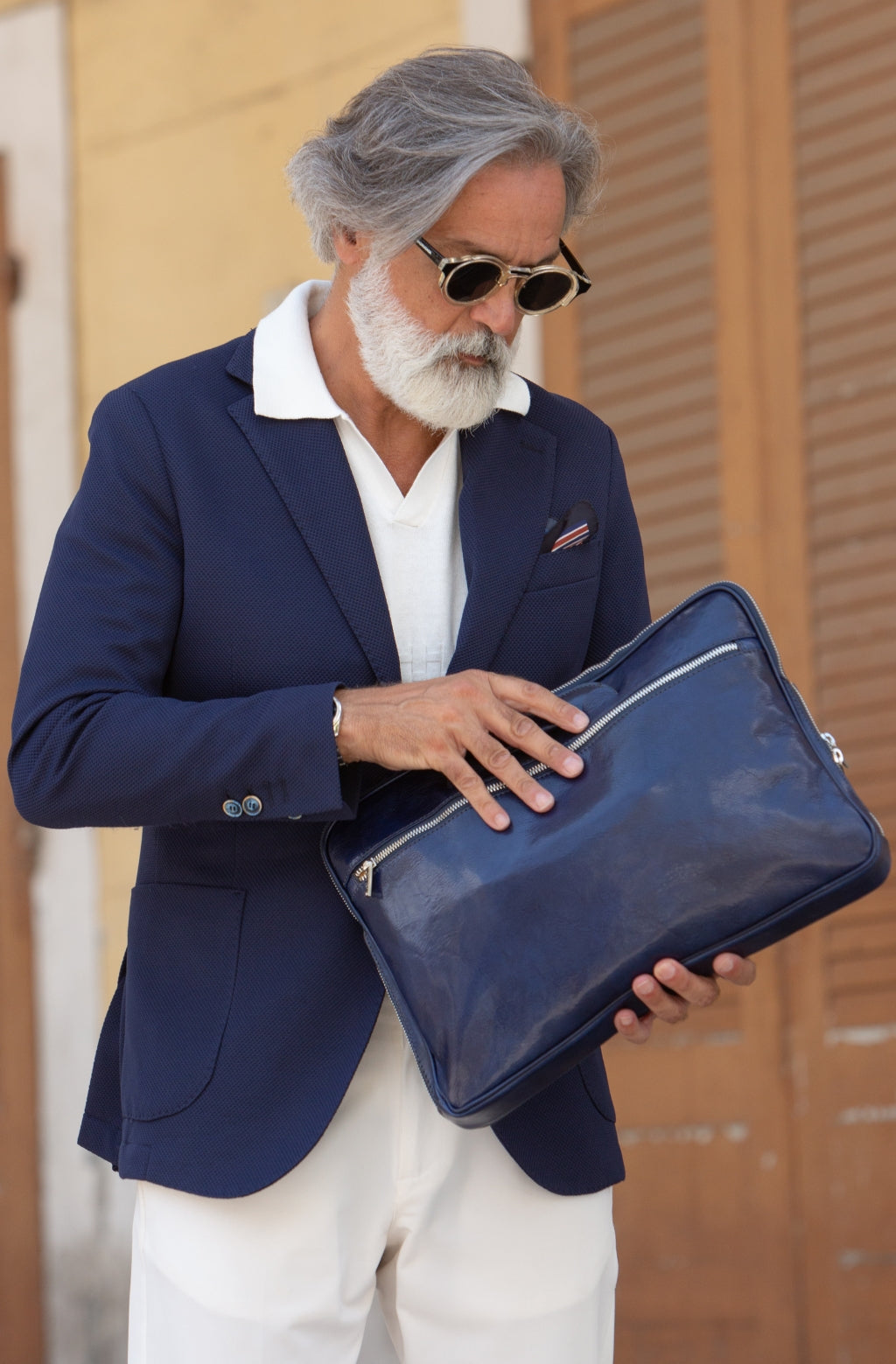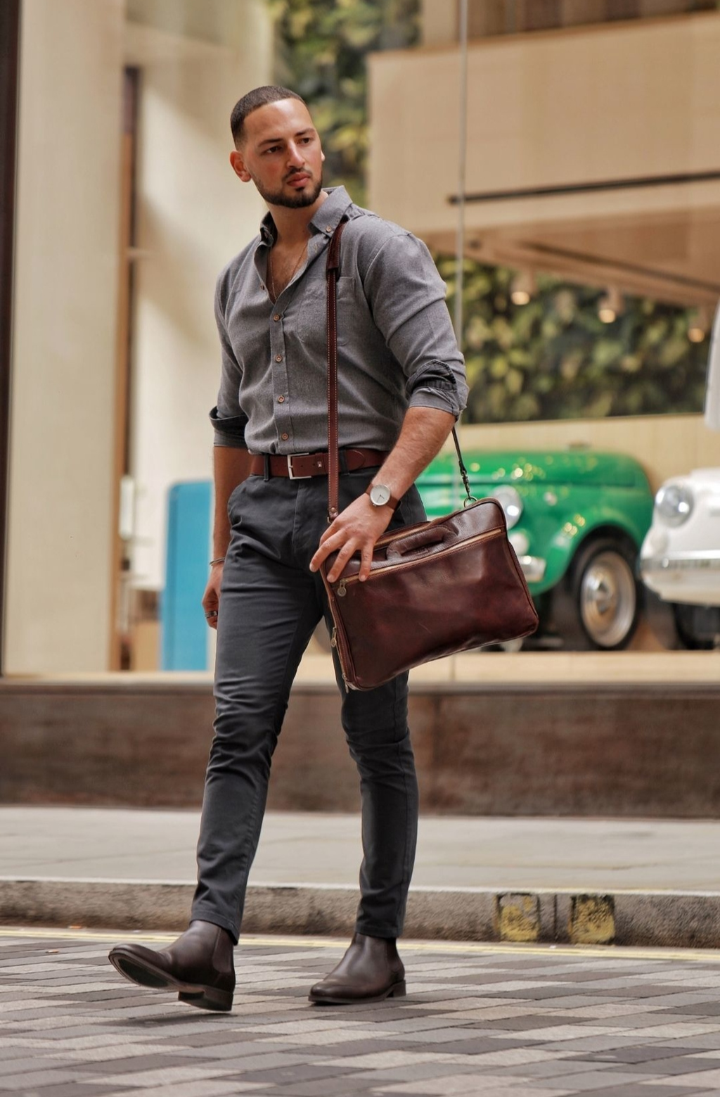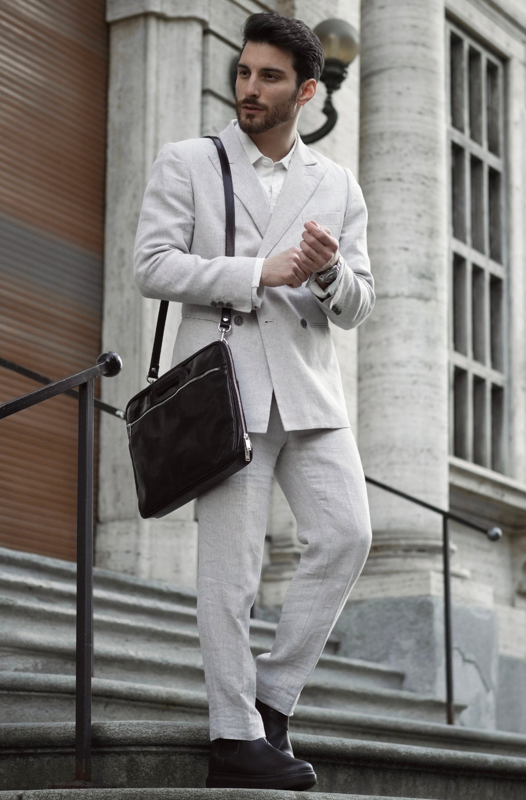 A full-grain leather briefcase that expresses perfect harmony between hard and soft. Top quality hand-dyed leather gives a sentimental feel, but the lines convey a light touch of modern. Timeless and current. Manly and feminine. Urban practicality with charisma.