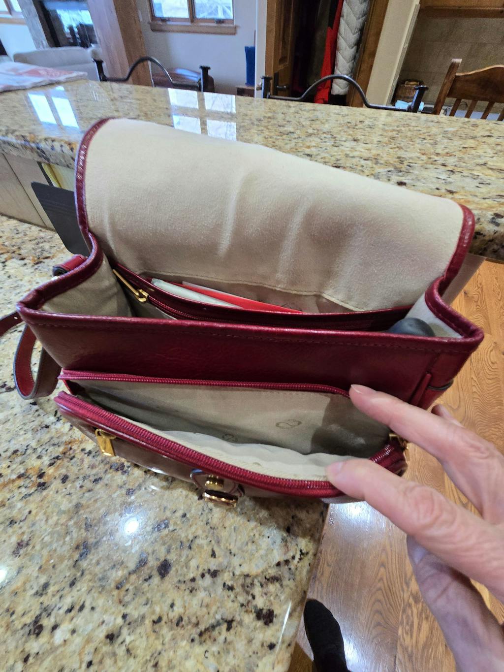 It took me forever to order a new purse. I did not want a clipon strap because they unclip too easily. This purse's strap is sewn on securely. The purse has good storage with several compartments and a place for my phone so i'm not fumbling around the bottom of the bag for it. The problem i have is the strap. It is too long. I do not like that is can be a cross body. The loose end of the strap sticks up. That bugs me and I knew it would. I also wish the strap was wider as that would be more comfy on my shoulder. The red color is very pretty and I have gotten compliments on it. This purse snaps shut from the bottom up which seems a bit more secure but takes time to get used to The company needs to improve the skinny strap.