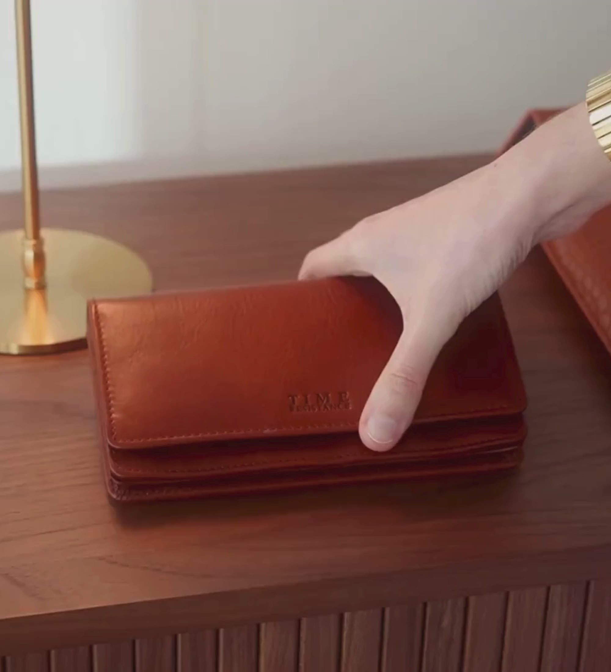 Time Resistance bags and accessories are crafted from premium full-grain, hand-dyed, vegetable-tanned Italian cowhide, known as Vachetta leather, which develops a beautiful patina and ages gracefully over time.
