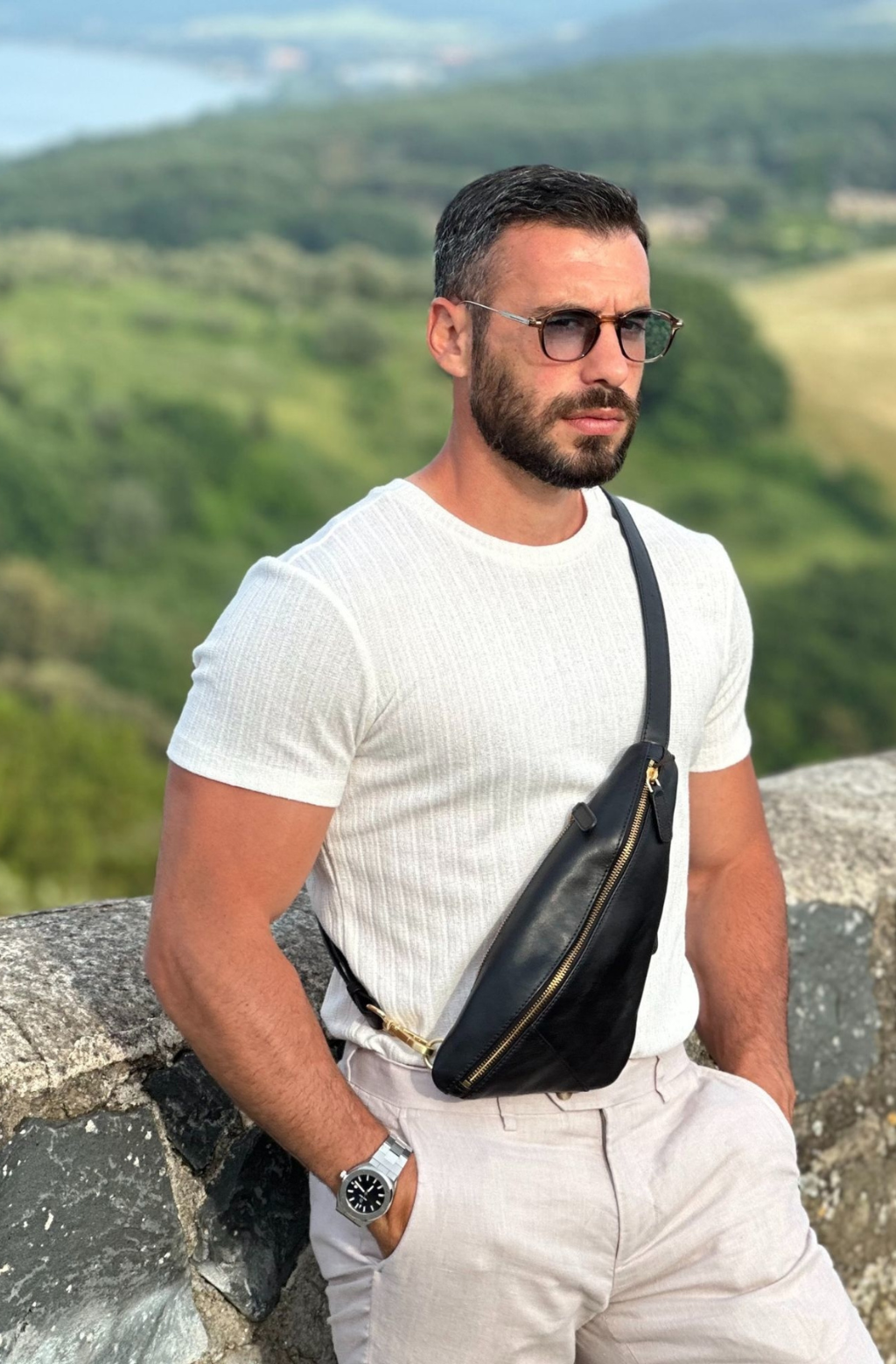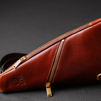 Introducing our leather sling bag Tales of the City quotes, a bold statement of individuality and contemporary flair. Its irregular triangle shape defies convention, with sharp, asymmetric corners that speak to the dynamic spirit of the modern explorer. As you sling it over your shoulder, you feel a surge of confidence and empowerment, knowing that you carry not just a bag, but a symbol of your unique perspective on life. Its minimalistic design exudes an air of effortless cool, while the adjustable strap offers versatility and adaptability to suit your every mood and movement. With zip pockets discreetly nestled within, this bag is not just a fashion statement, but a practical companion for urban adventures and spontaneous escapades. Wear it on your left or right side, embracing the freedom to express yourself however you choose. Embrace the unconventional with our leather chest bag, where style meets spontaneity in perfect harmony.