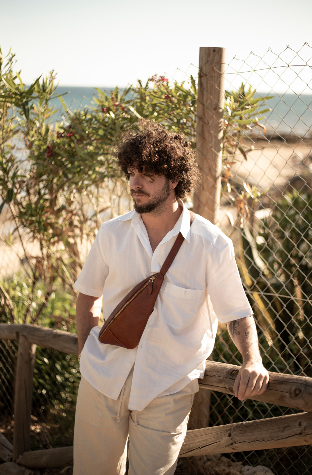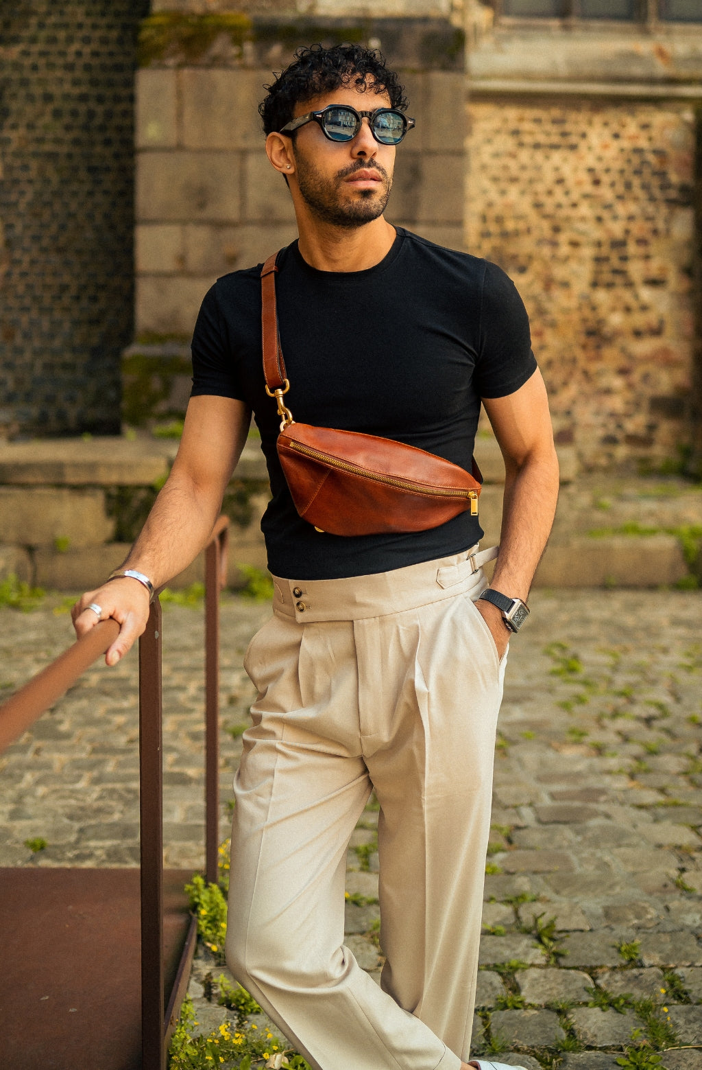 Introducing our leather sling bag Tales of the City quotes, a bold statement of individuality and contemporary flair. Its irregular triangle shape defies convention, with sharp, asymmetric corners that speak to the dynamic spirit of the modern explorer. As you sling it over your shoulder, you feel a surge of confidence and empowerment, knowing that you carry not just a bag, but a symbol of your unique perspective on life. Its minimalistic design exudes an air of effortless cool, while the adjustable strap offers versatility and adaptability to suit your every mood and movement. With zip pockets discreetly nestled within, this bag is not just a fashion statement, but a practical companion for urban adventures and spontaneous escapades. Wear it on your left or right side, embracing the freedom to express yourself however you choose. Embrace the unconventional with our leather chest bag, where style meets spontaneity in perfect harmony.