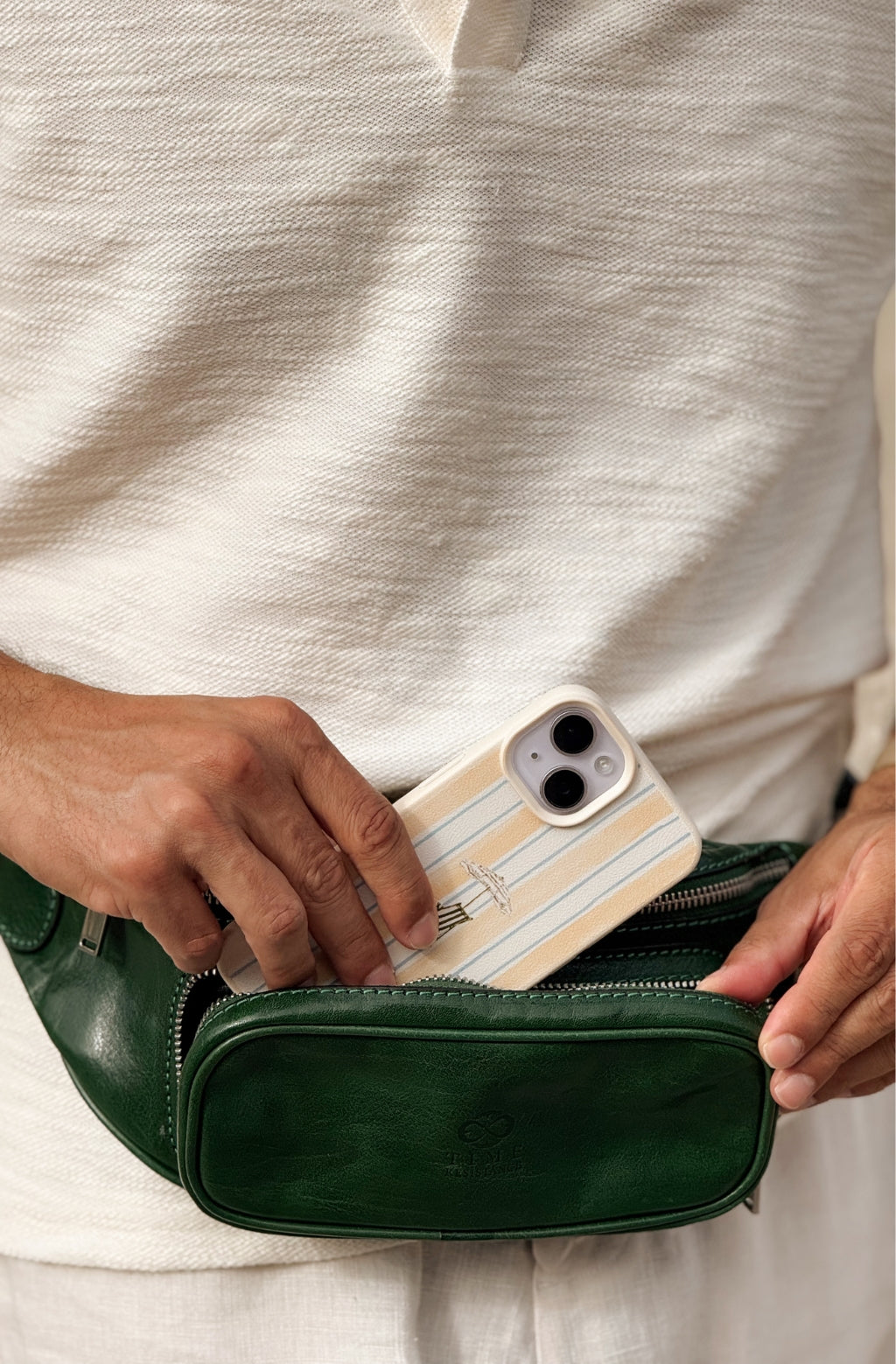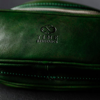 Time Resistance bags and accessories are crafted from premium full-grain, hand-dyed, vegetable-tanned Italian cowhide, known as Vachetta leather, which develops a beautiful patina and ages gracefully over time.