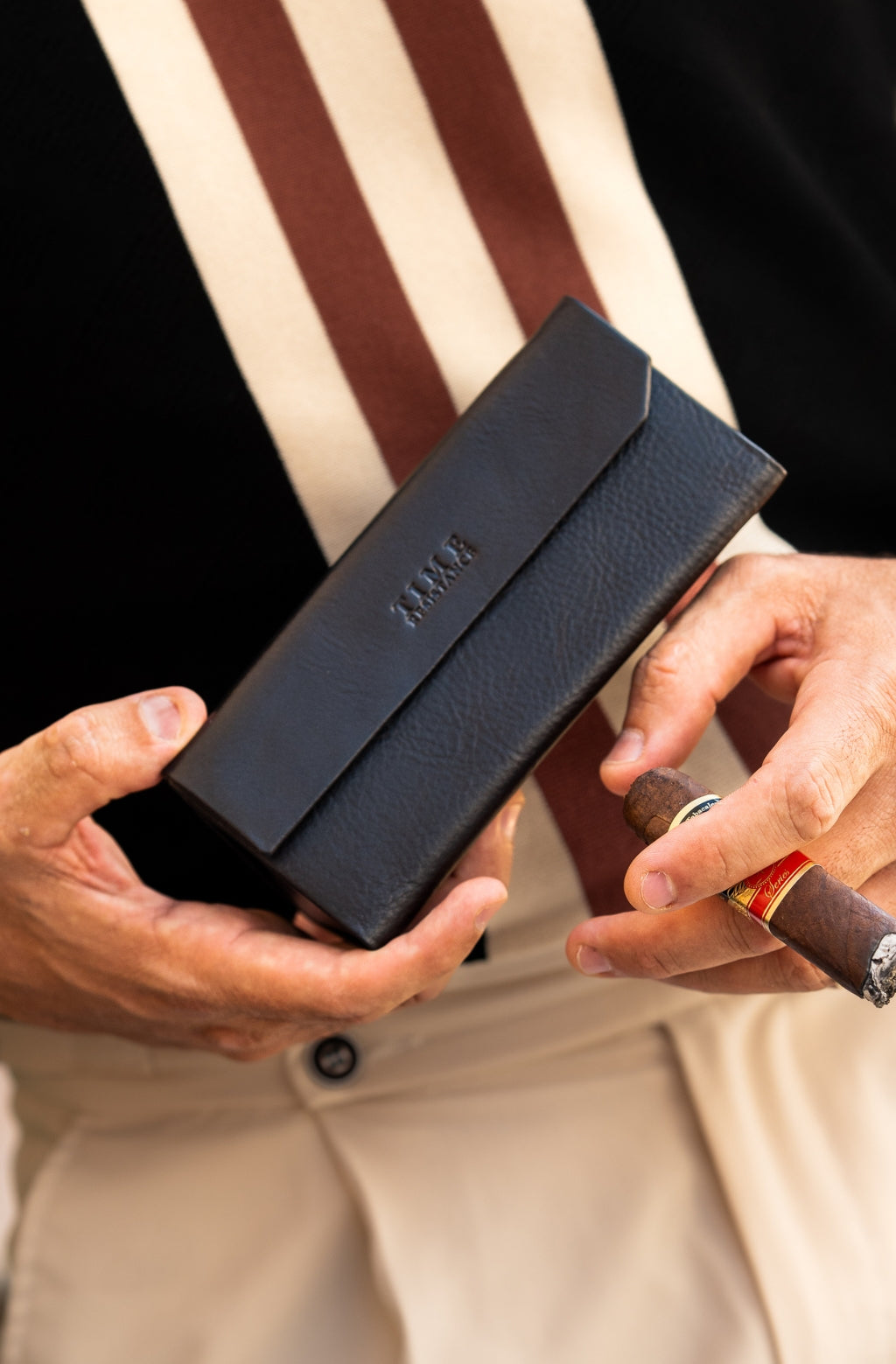 Some pieces speak softly, yet carry a certain weight. The Riddle of the Sands is one such piece - crafted from full-grain Italian leather and shaped by the kind of thoughtfulness that makes function feel like poetry. A structured shield for your eyewear when needed, it folds away into a whisper-thin silhouette when not. The magnetic closure seals with grace, not force. Understated, intelligent, and undeniably refined - it’s an everyday object, elevated.
