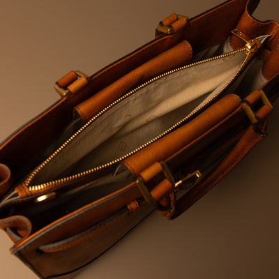 Shirley carries a quiet strength in its design. Its clean lines, structured silhouette, and refined front strap with a decorative buckle create a presence that feels composed, confident, and timeless. Crafted from full-grain leather, it holds a sense of permanence - designed not for seasons, but for years. A handbag for women who move with intention, where elegance is instinct, not performance.