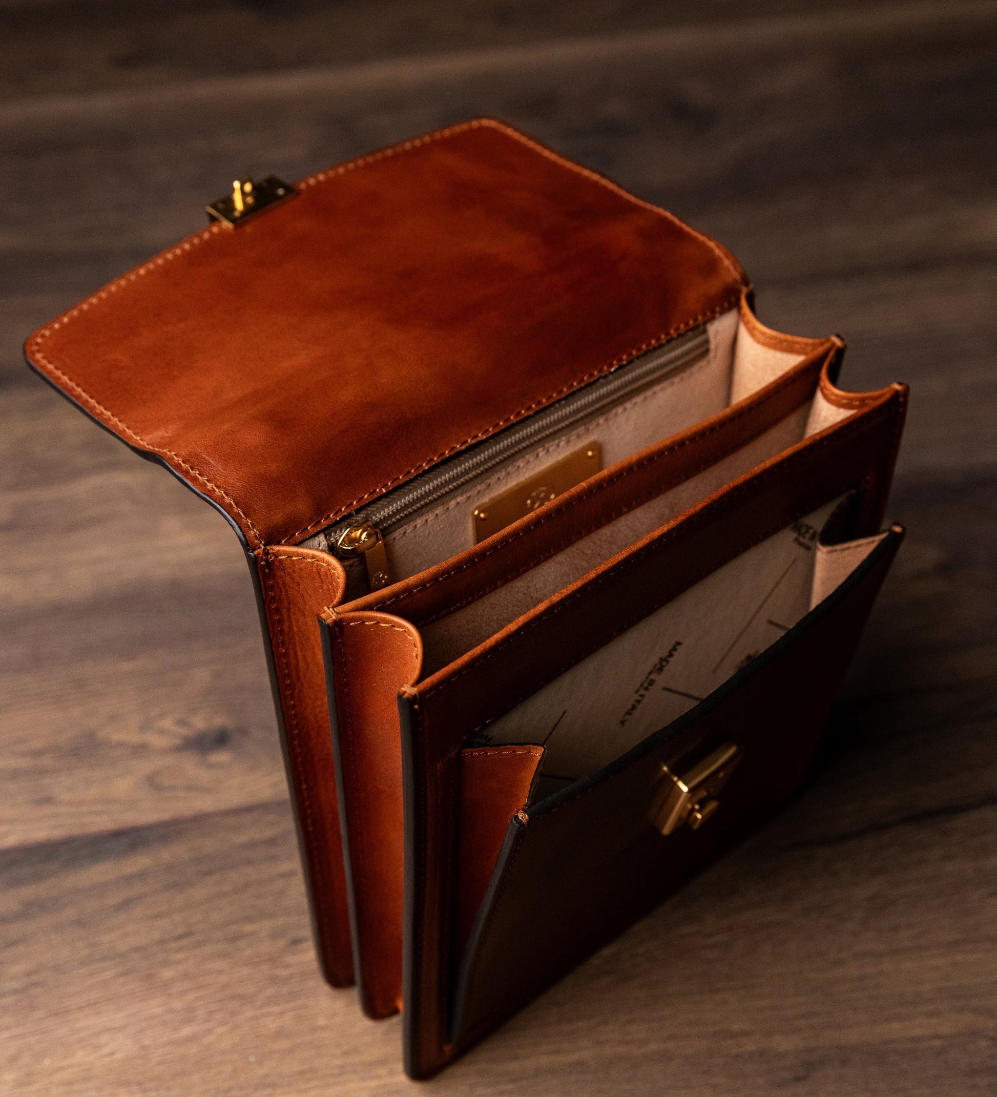 • Interior lined with leather, pockets lined with textile