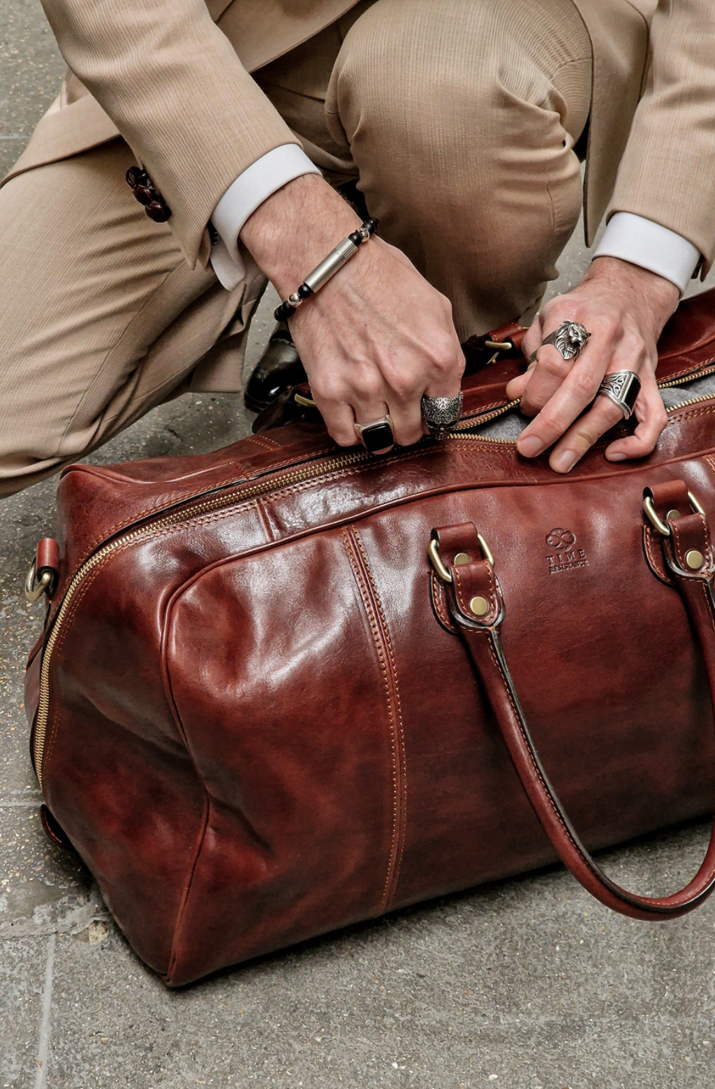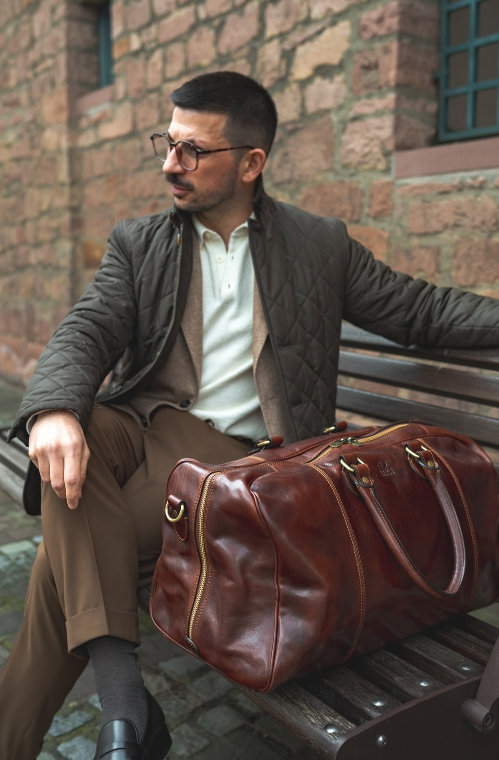 This full-grain leather duffel bag will be eager to accompany you on all your trips away from home, whether they be business or pleasure. In fact, the more you take this friend traveling, the better it will look.
