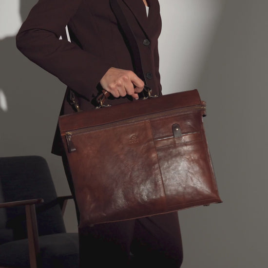 Brown Leather Briefcase Laptop Bag for Women - From Here to Eternity