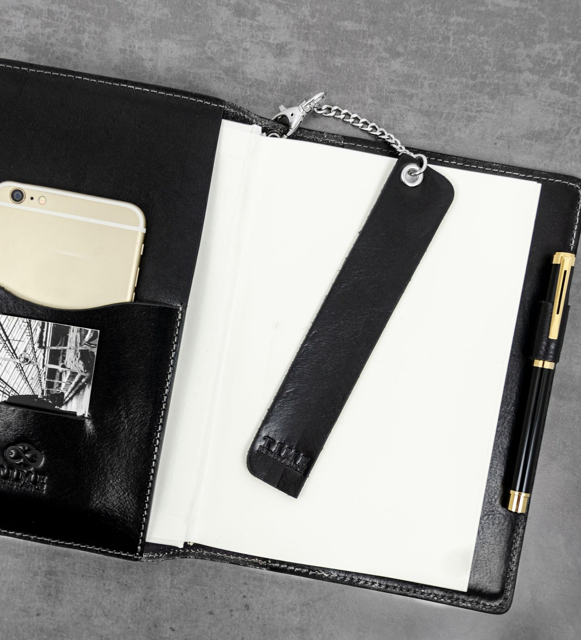 • Pen loop to keep your pen somewhere convenient; the loop is large enough to use with most writing instruments.