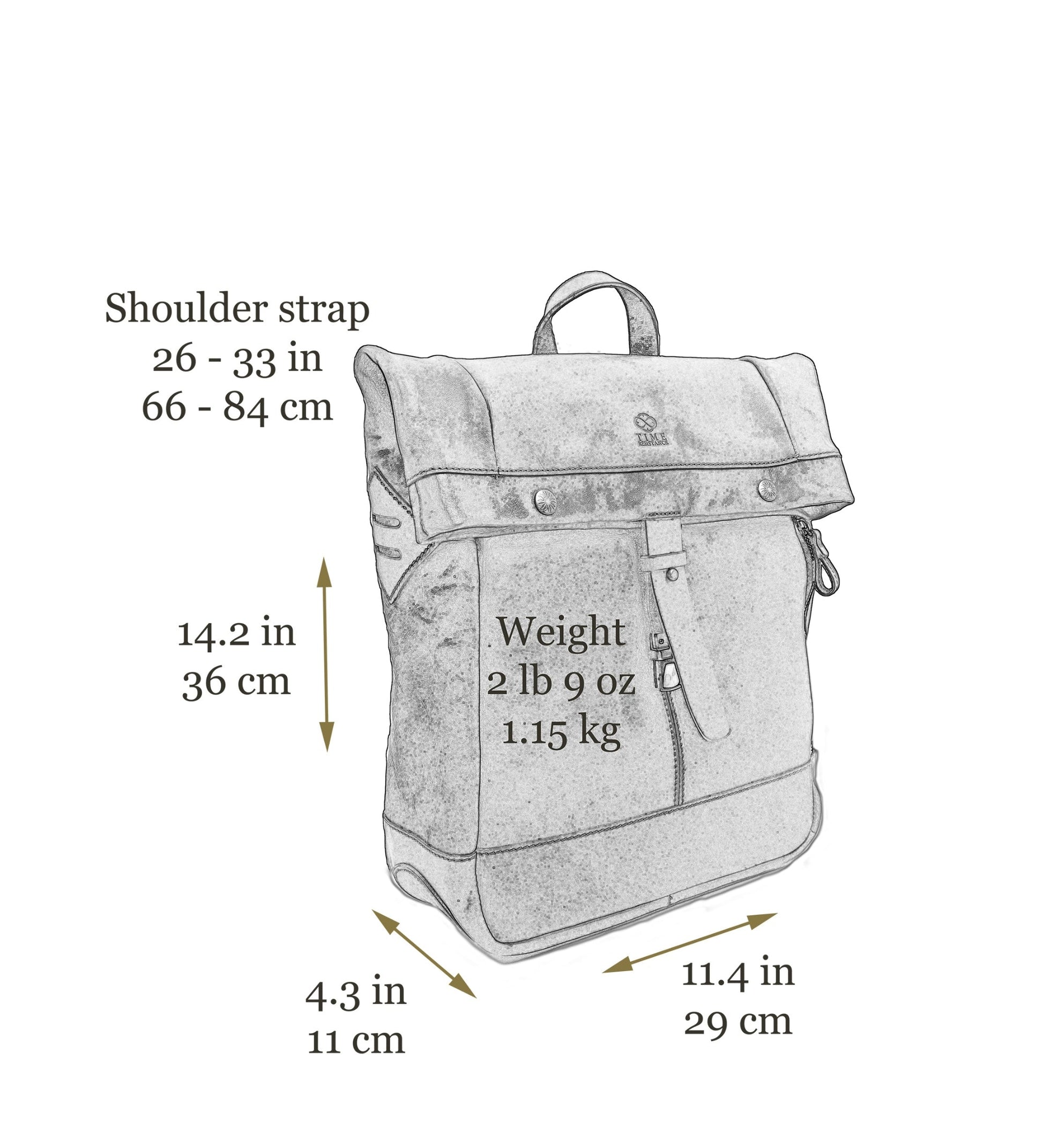 • A padded compartment with closure for laptop up to 13” (e.g. MacBook 13” or MacBook Air 13”)