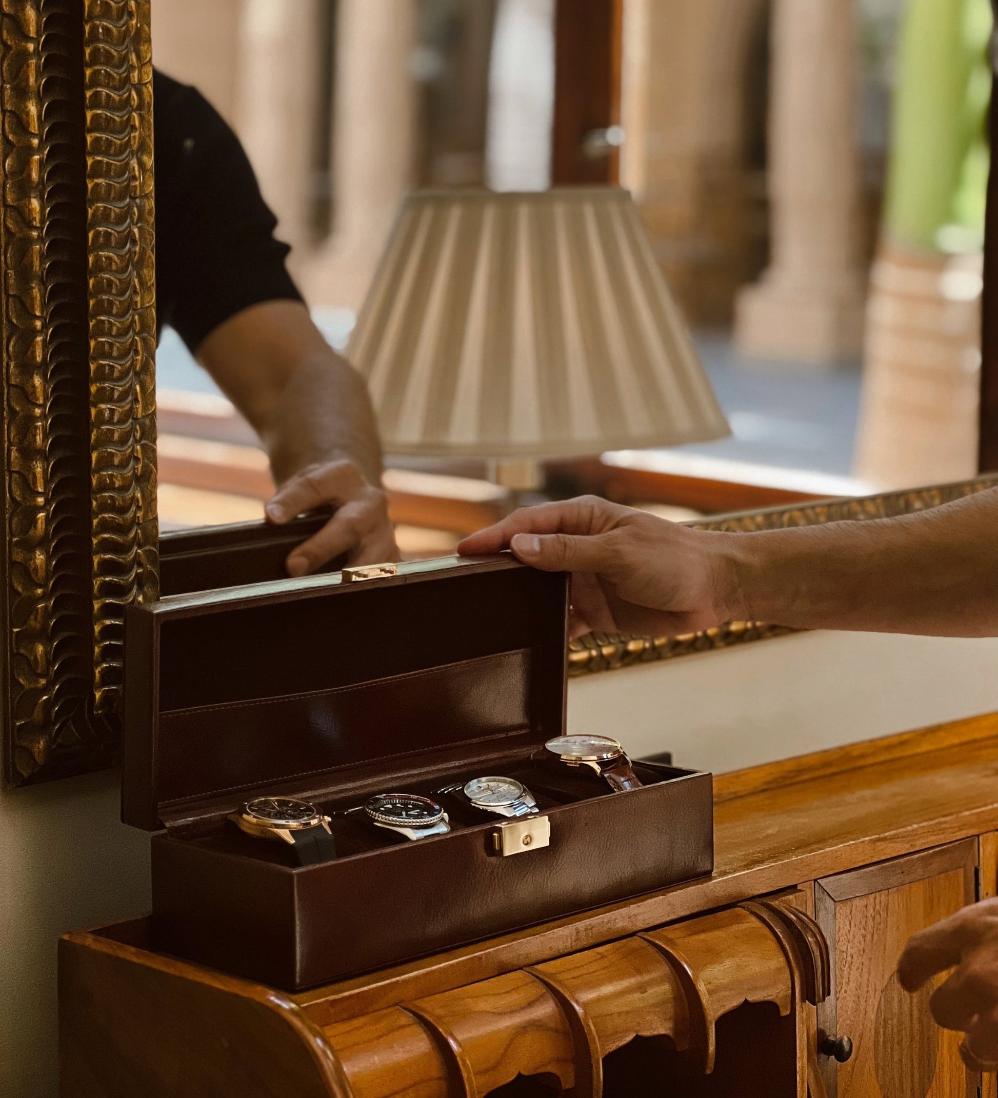 La boîte à montres en cuir Herzog permet de conserver vos garde-temps en toute sécurité. Fabriqué en cuir italien pleine fleur et en velour...