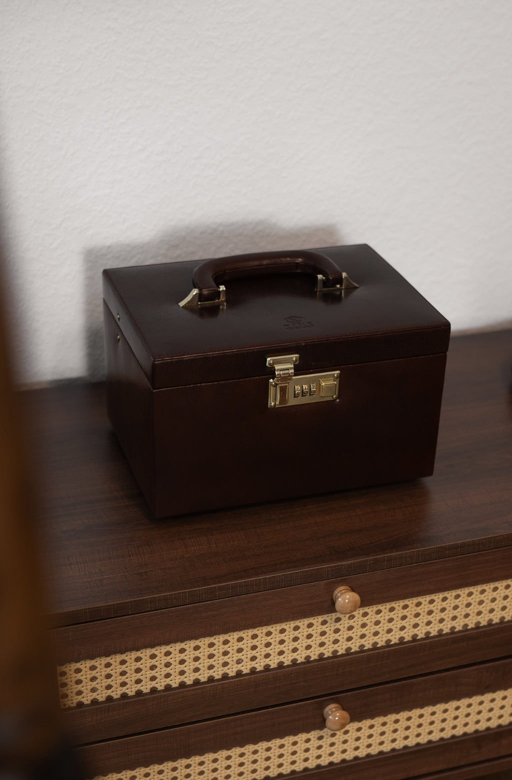 It's nice, the quality is good (with the exeption of the lock, hence only four stars). Lots of space for jewels. I haven't actually traveled with it yet, so it is a bit early to tell how well things stay in place but at least I have one place to store it all at home now.