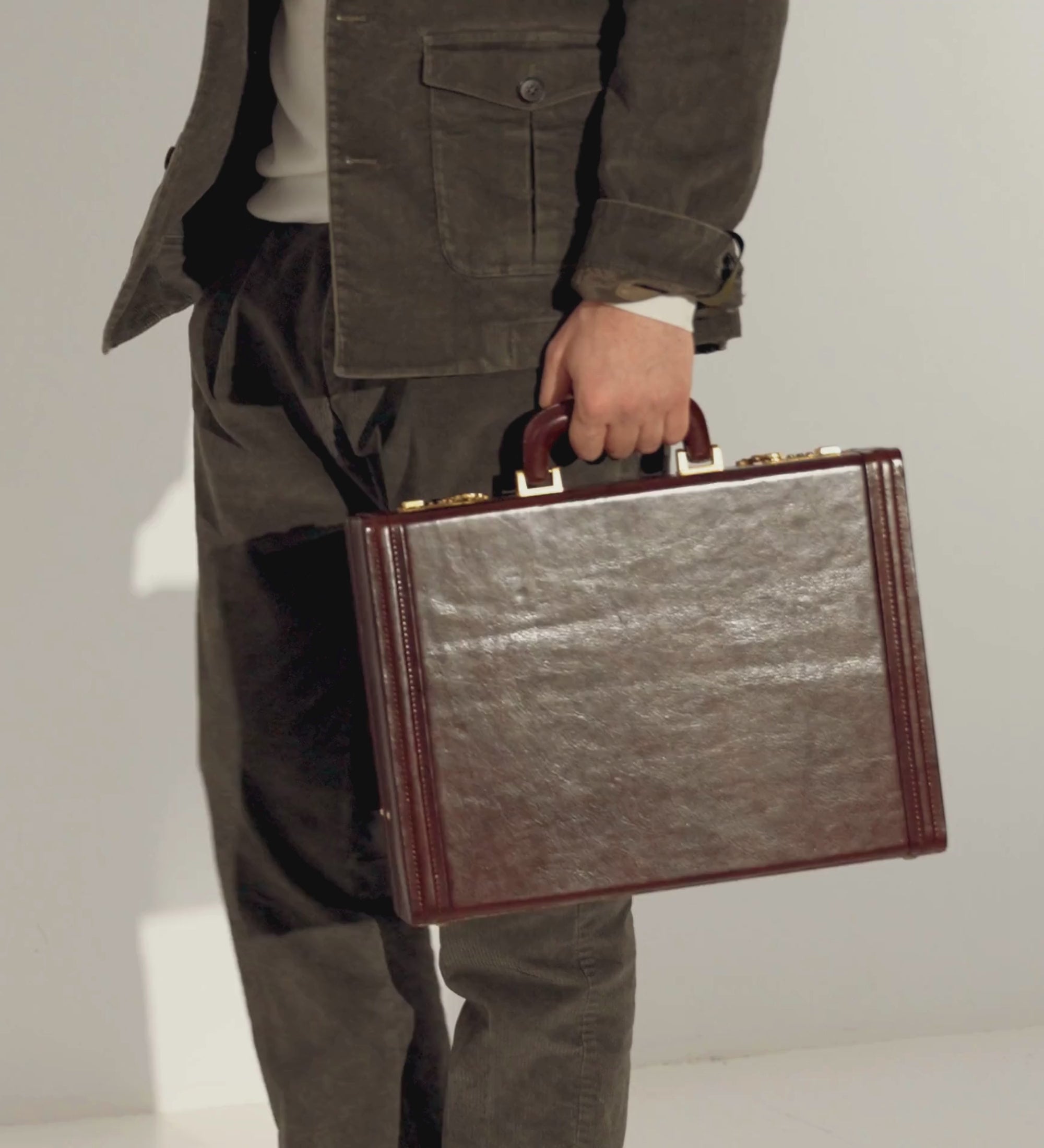 This premium leather attaché case is the perfect choice for the professional on the go. Expertly crafted from full-grain leather, this case features a classic design with plenty of room to securely store your laptop, documents, and other important items. The rich leather exterior is accented with gold color hardware, giving the bag a timeless look that will never go out of style. The interior is fully lined with a soft velvet. The combination lock provides additional security, giving you peace of mind that your items will stay safe and secure. Whether you're heading to the office or jet-setting around the world, this luxurious leather attaché case is the perfect companion.