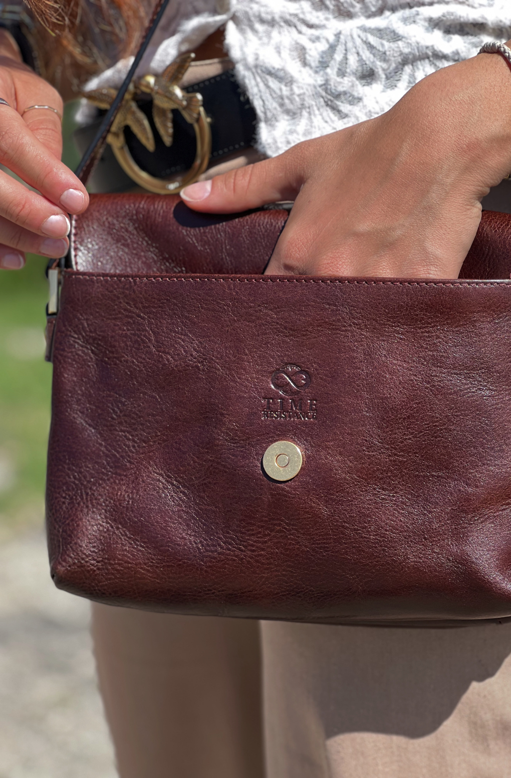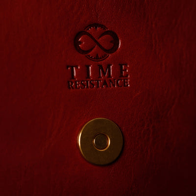Time Resistance bags and accessories are crafted from premium full-grain, hand-dyed, vegetable-tanned Italian cowhide, known as Vachetta leather, which develops a beautiful patina and ages gracefully over time.