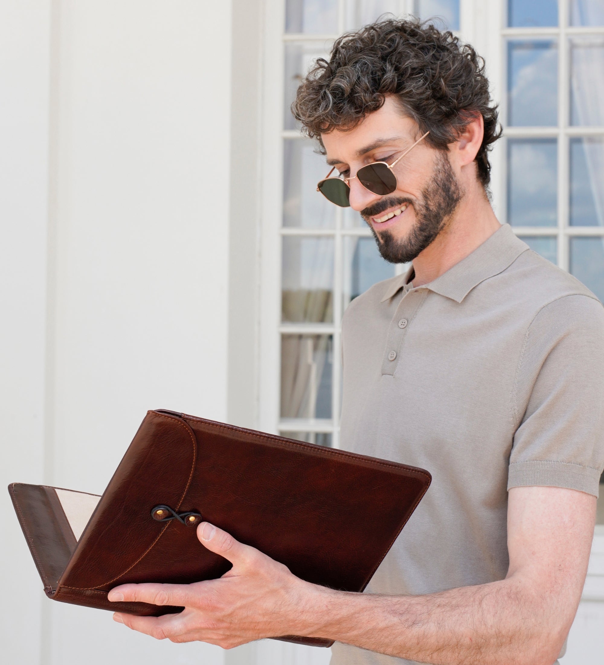 Introducing "The Loved One" Leather Portfolio—a symbol of professional ambition and contemporary elegance. Crafted with precision and finesse, this sleek accessory embodies more than just functionality—it embodies a mindset of success and sophistication. As it graces your hand, you sense its silent assurance, knowing it embodies the tools to make a profound impact. With its modern design and refined details, it exudes confidence and readiness for the challenges ahead. Designed to accommodate both a tablet and a writing pad, and featuring multiple pockets for cards and pens, it seamlessly blends convenience with refinement. Elevate your professional persona with "The Loved One" Leather Portfolio—a statement of poise, refinement, and the pursuit of greatness.